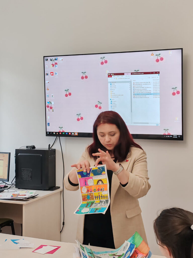 Miercuri, 22 aprilie 2026, la sediul Alianței Franceze din Suceava, s-a desfășurat activitatea intitulată LES ENFANTS DU MONDE – L’AMITIÉ SANS FRONTIÈRES, un eveniment dedicat prieteniei și dialogului intercultural. Activitatea a fost coordonată de doamna profesor de limba franceză Pelin Elena Cosmina și de doamna profesor de educație muzicală Caliniuc Adriana, cadre didactice ale Școlii Gimnaziale „Miron Costin” din Suceava. Evenimentul s-a derulat în parteneriat cu Alianța Franceză Suceava, în cadrul proiectului Les après-midi francophones à Suceava.